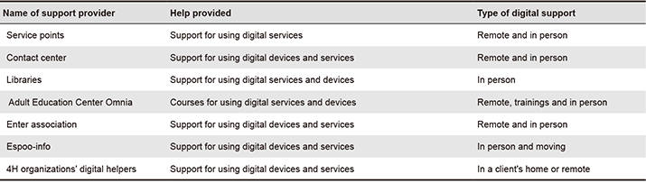 Table 2. Digital support services in the City of Espoo.