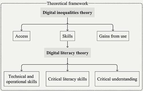 Figure 1. Theoretical framework of the study depicting dimensions of digital literacy and digital inequality.