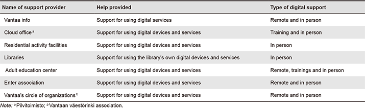 Table 1. Digital support services in the City of Vantaa.
